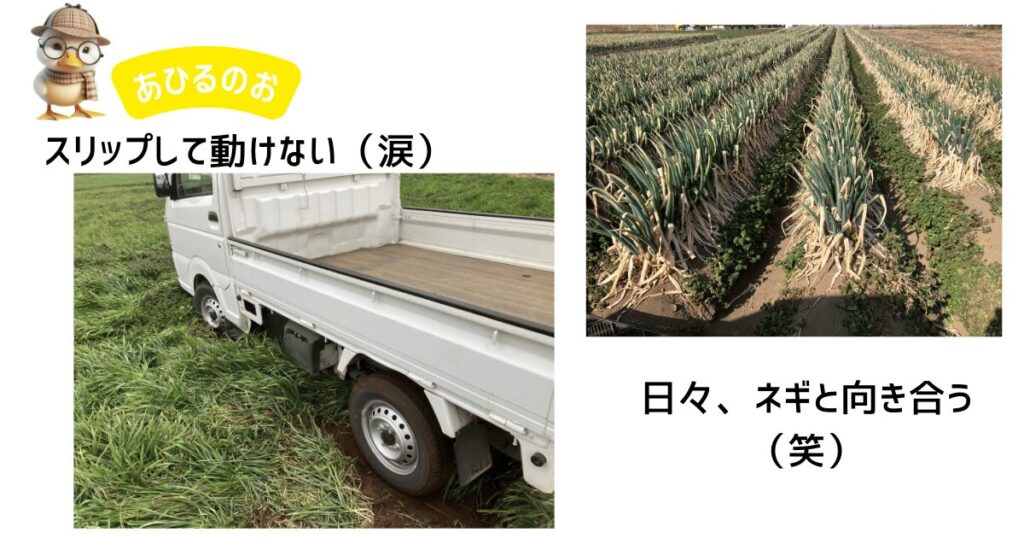 いま、わが家ではネギの収穫が真っ盛りなのですが、一緒に作業をしている父がぎっくり腰になってしまい、昨日は私一人で収穫を頑張っていました。ところが、疲れがピークに達した頃にトラブルが起きてしまったのです。